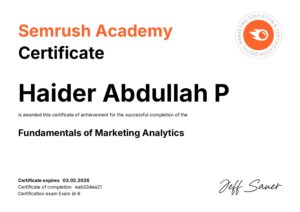 I am an experienced results-driven digital marketing strategist & analyst based in Valanchery. As a BBA graduate with three years of hands-on experience in the digital marketing field, I have developed expertise in Search Engine Optimization (SEO), Social Media Marketing (SMM), Google Ads, content marketing, email marketing, data analysis, and design. My passion lies in helping businesses establish a strong online presence, enhance brand awareness, and optimize their digital strategies to achieve measurable growth. I take a data-driven approach to marketing, ensuring that every campaign is backed by research and industry best practices to maximize results.
